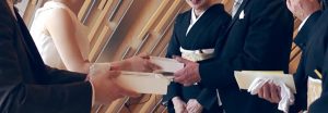 挙式は、幸せになりますと「誓いをたてる場」「ゲストの皆様に承認してもらう場」なので、厳かに感動的に行われます。