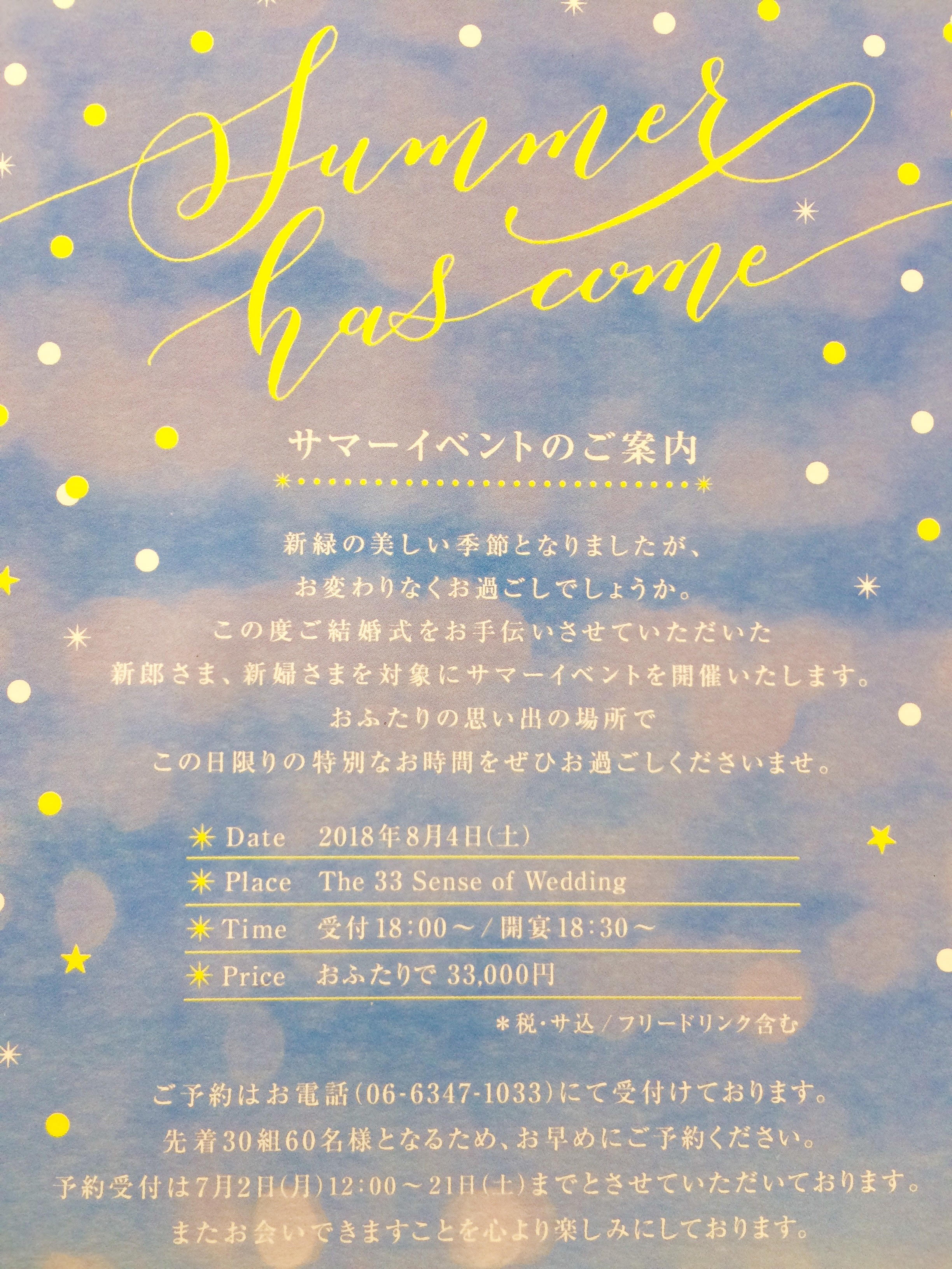 マリッジコレクションの開催のお知らせ いつもThe 33 Sense of Weddingのブログをご覧...