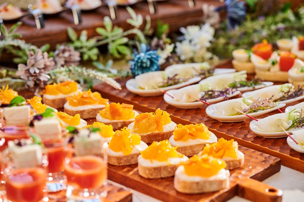 宴会・パーティの様々な趣旨に合わせて、料理長が最適な料理をご提案させていただきます。例えばワインの発表会に合わせたワインに合う料理のご提案や、健康セミナーに合わせたヘルシーな料理のご提案など、ご要望に合わせてフレキシブルな対応が可能です。