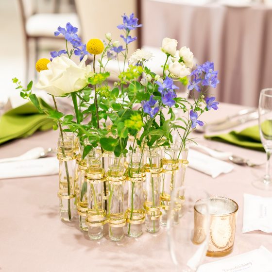 一番はお料理。試食会でコースを食べ比べ、ゲストの方の好みも考えつつ、コースの内容を決めました。出身地である福岡にちなんで、美味しい明太子を入れたい!というワガママにも快く対応していただけたのは嬉しかったです。