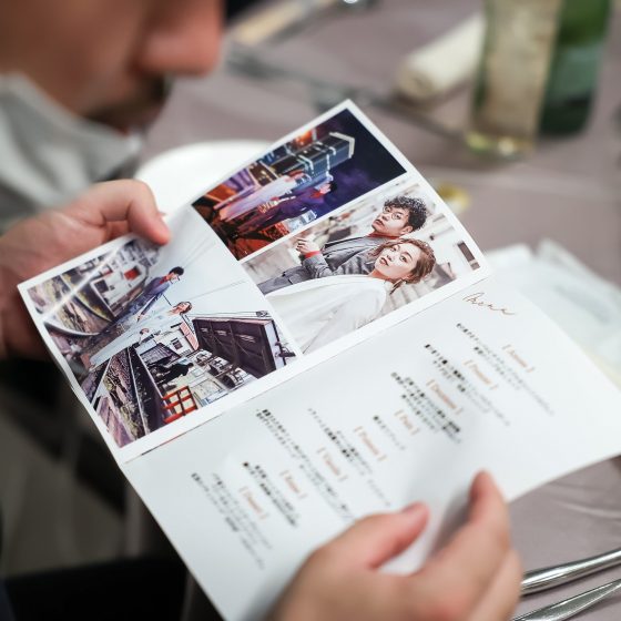会場に飾った前撮り写真の撮影もカメラマンとスタイリストの友人たちとロケを行い撮影しました。その友人たちも列席してくれたのですが「誰が取ったんだろう~?」と話題になり、ゲスト同士のコミュニケーションが産まれた時には、縁が縁を呼び繋がっていく様で嬉しかったです。