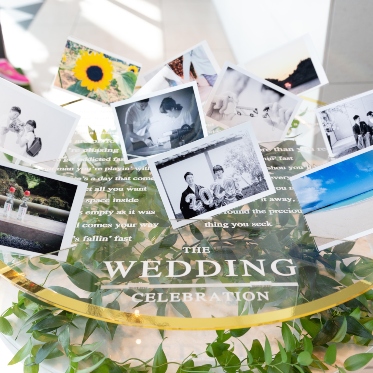 ウェルカムスペースにゲストとの思い出写真をたくさん飾ったり、