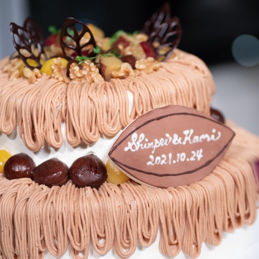《ウエディングケーキ》新郎の大好物のモンブランで秋らしいケーキをお願いしました。