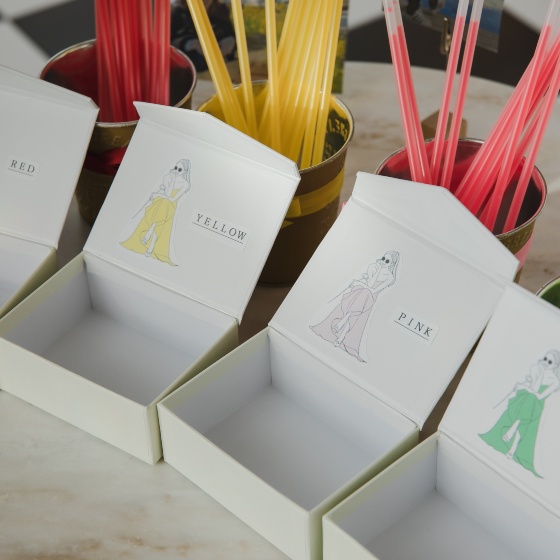 もう1つゲストに楽しんでもらうためにカラードレスの色当てクイズも用意し