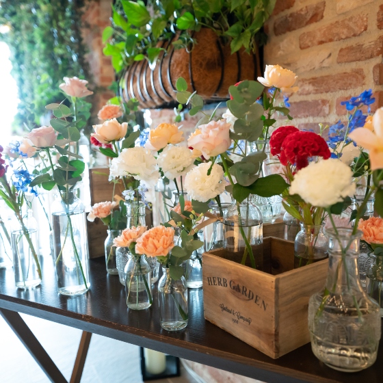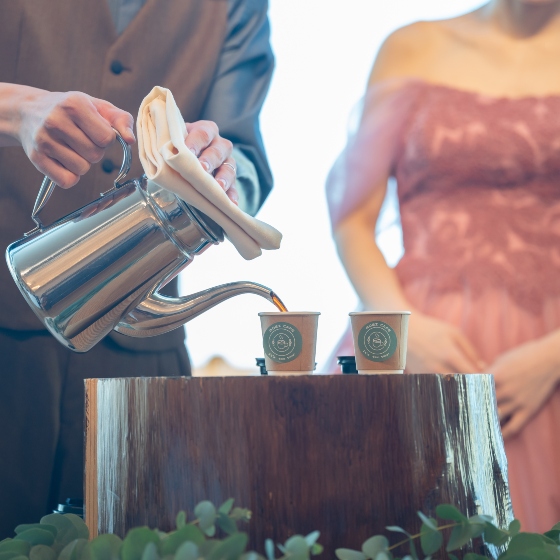 フラワービュッフェでゲスト自身にテーブルコーディネートをしてもらったり自分たちの好きなコーヒーをオリジナルカップと共に持ち込んで提供してもらいました