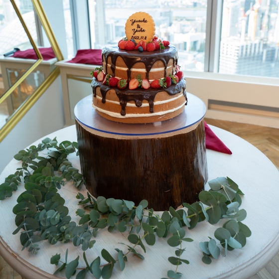 2人ともチョコレートが好きなのでウェディングケーキはチョコをかけてもらいました!