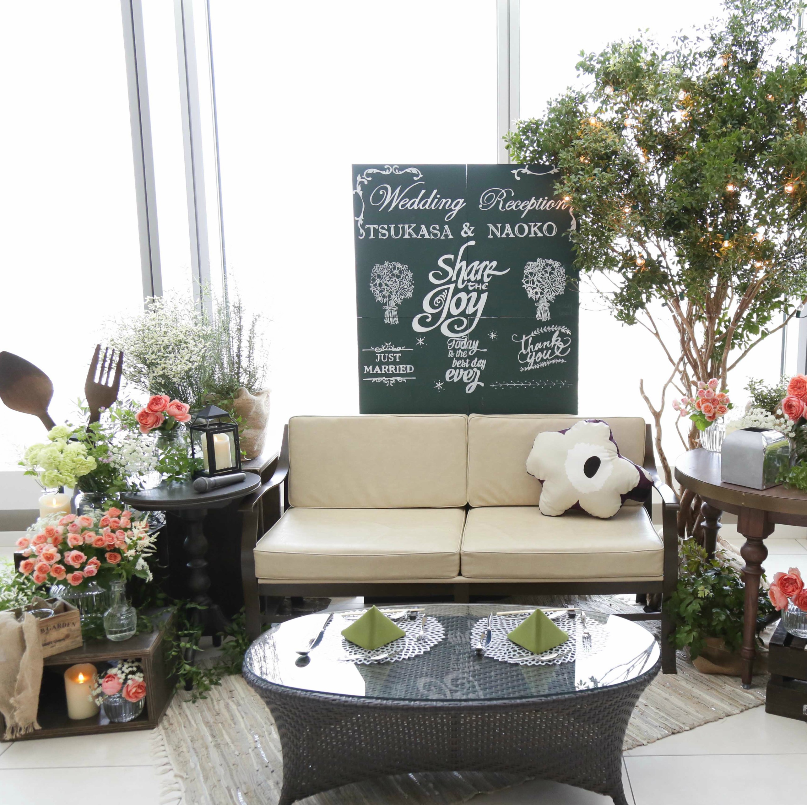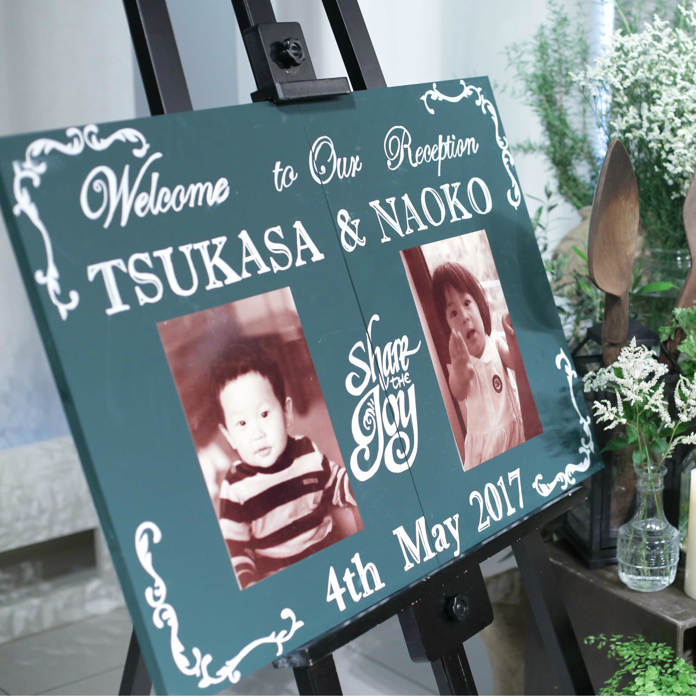 手作りのチョークボードも映えるように飾っていただき ゲストの方が 私達がいない時にもフォトブースとしてたくさん写真を撮ってくれていました
