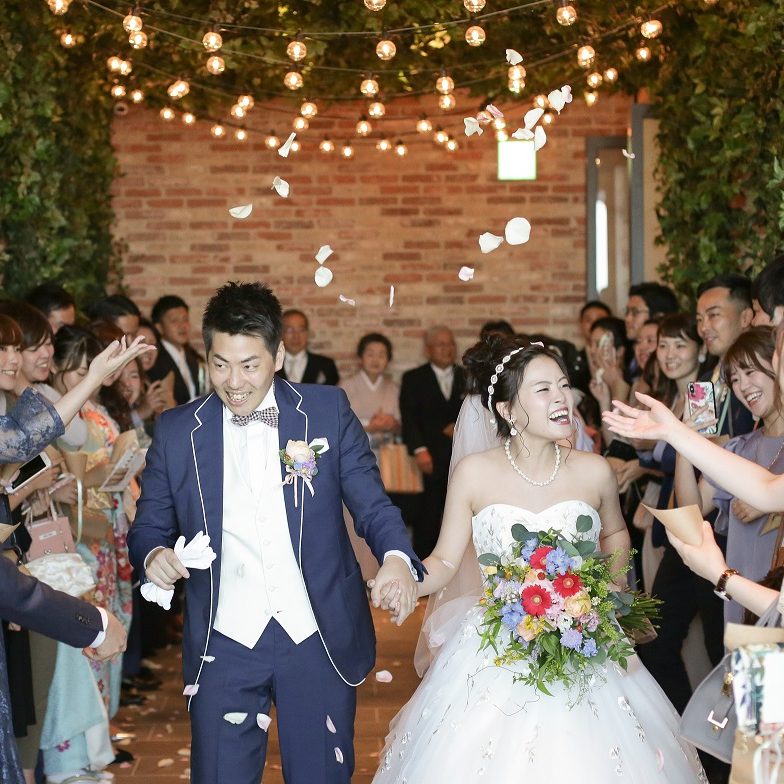 挙式は 自分たちらしく挙げたかったので人前式を選びました 好きな入退場曲を選べたり 大切な友人に署名をしてもらうことができたので良かったです また 堅苦しい感じではなく あったかい雰囲気にしたかったので手作りのリボンワンズをゲストに振ってもらいました