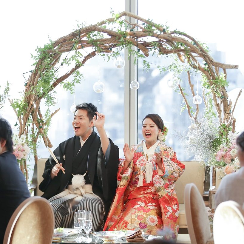 笑顔が咲き誇るような式にしたいという思いを込め『Blooming Smile』というテーマをつけました 自分たちだけでなくより多くの人に楽しんでもらうために 余興を多く盛り込みました また中座の時には一緒に歩いてもらう人が好きな曲を選びました 日頃の感謝の気持ちを伝えるための式にしたかったので1人でも多くの人が参加して良かったと思えるような演出になるよう工夫しました