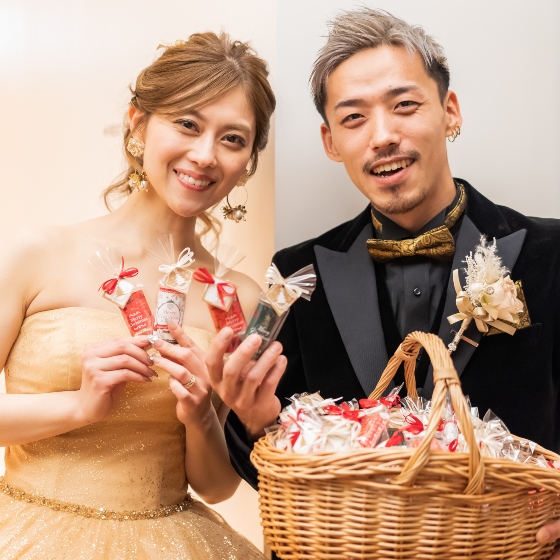 私達お互いの大切な人達が 同じ空間に集まる事が本当に楽しみで 来てもらった方達に全ての時間楽しんでもらいたいなと思い余興など敢えて入れず 私達から演出・サプライズ等用意しました