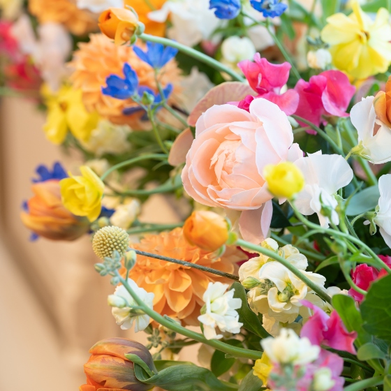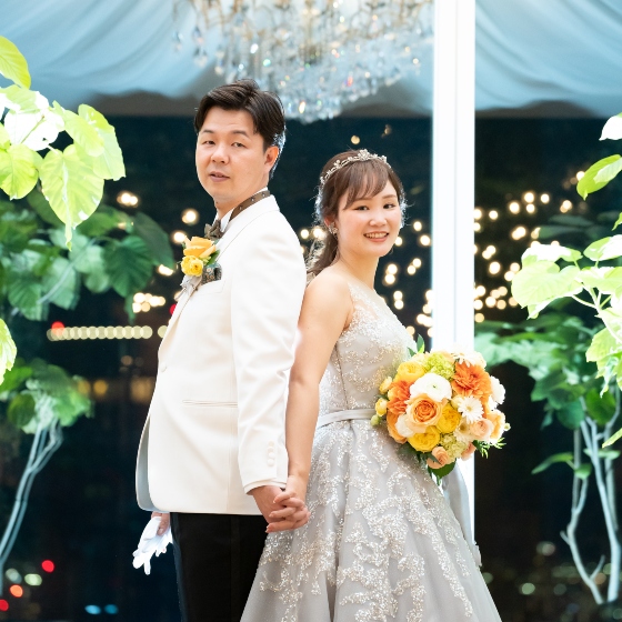 ブーケや会場のお花は私の好きな黄色を入れていただきつつ、華やかにしていただけるようにお伝えしました。式自体が冬だったので黄色を入れても夏っぽくなりすぎないように気をつけながら担当の方とお話をしました。当日まで実物は見れませんがパソコンで画像を出してくれたりととてもイメージしやすく、当日も思った通りの華やかさでブーケも会場の色合いもとってもお気に入りでした。