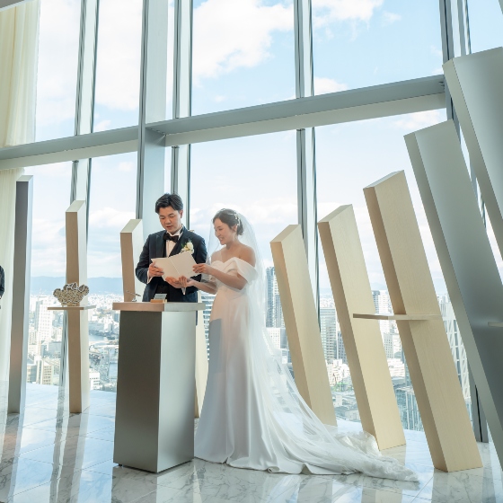 また披露宴会場の雰囲気もとても良く、見学時にいただいた食事もとても美味しくて魅力的でした。来ていただくゲストの方には美味しい料理を食べていただきたかったのと、私たち自身も堅苦しいフレンチ等はあまり好みでなかったのでフレンチに少し日本食をというコンセプトの食事にも惹かれました。なにより祖父母が参列することがあったり、ゲストの方にも移動で負担を与えないワンフロアで全てが行えるというのも魅力的でした。