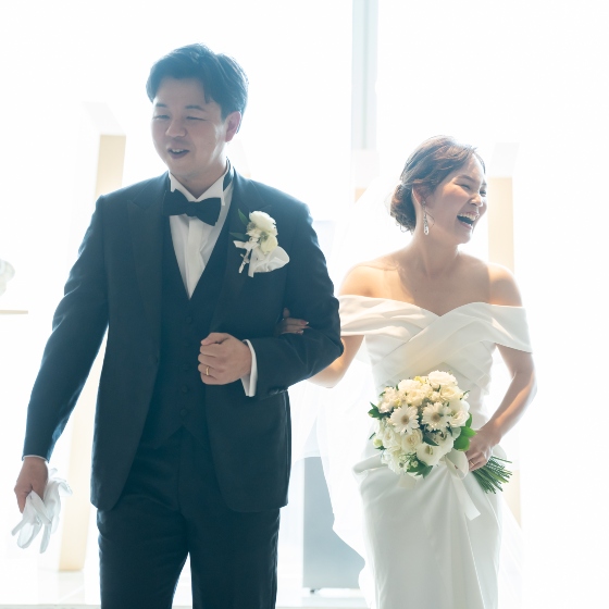 なにより堅苦しくなく、笑いありを考えていたこともあり入場の時なども目を合わせて笑ったり手を振ったりと、新郎新婦共に常に笑顔で過ごすことができゲストの方の笑顔も初めからたくさん見ることができました。