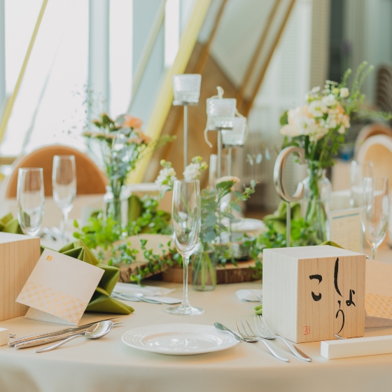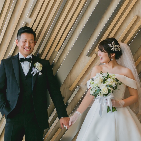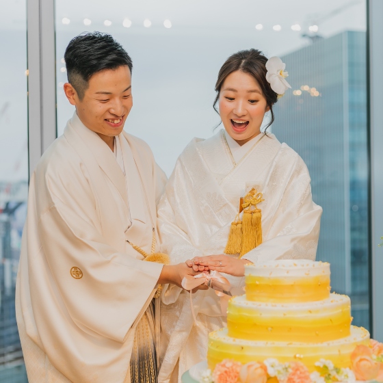 一味違うこだわりを色々と入れた結婚式にしたいという想いがありました。式場の方とお話をさせていただくなかで、柔軟に私たちの希望を聞いていただき、またプロジェクションマッピングなど他の式場にはない演出があることが決め手となりました。各線梅田駅から地下で直結でアクセスがいいことや、高層階で雨でも景色を楽しめるなど天候に左右されにくいこともThe 33に決めた理由のひとつです。