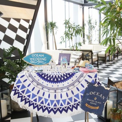 海をテーマに青や白を基調として結婚式のイメージ作りをしました。