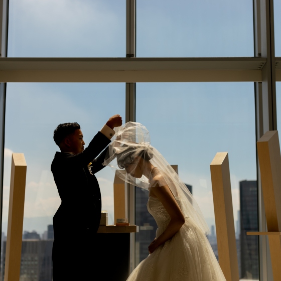 友人の紹介で、式場見学に行きました。見学時に、The 33 Sense of Weddingならではの映像演出や大阪を一望できる景観の良さに魅力を感じました。また、結婚式はゲストに感謝の気持ちを伝える場にしたいと考えていたので、料理が豪華な点も決めたポイントでした。