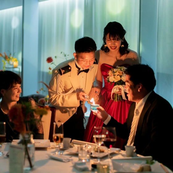 当日までは準備で忙しくバタバタでしたが当日はあっという間に終わってしまいました。両親にも感謝を伝えられ、親族や友人にたくさん祝ってもらい幸せいっぱい、素敵な1日になりました。プロデューサーさんをはじめスタッフの皆さんには私たちの希望を叶えていただき、また当日もサポートをしていただき思い出に残る最幸の結婚式になりました。