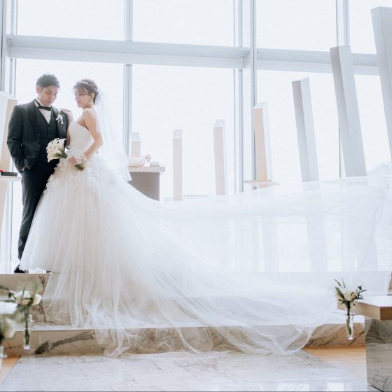 新郎新婦の衣装を揃えたところもこだわりのポイントだと思います。あとは、新婦の髪型もこだわりました。