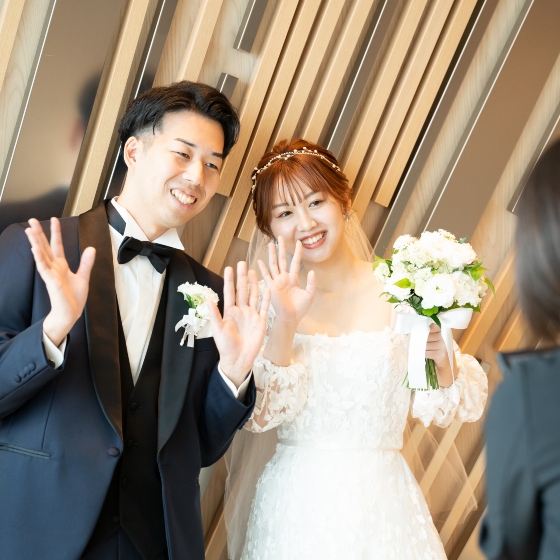 打ち合わせが始まった頃は、実感が湧かずフワフワとしており、予定を忘れてしまう粗相もしてしまいましたが、式が近づいて来るとともに身が引き締まりました。ギリギリまで優柔不断だったので藤田さんにはご迷惑をおかけしましたが、当日はすごく満足のいく式になったと思います。ゲストの方々の笑顔や涙に触れて、改めて結婚式をしてよかったと思いました。