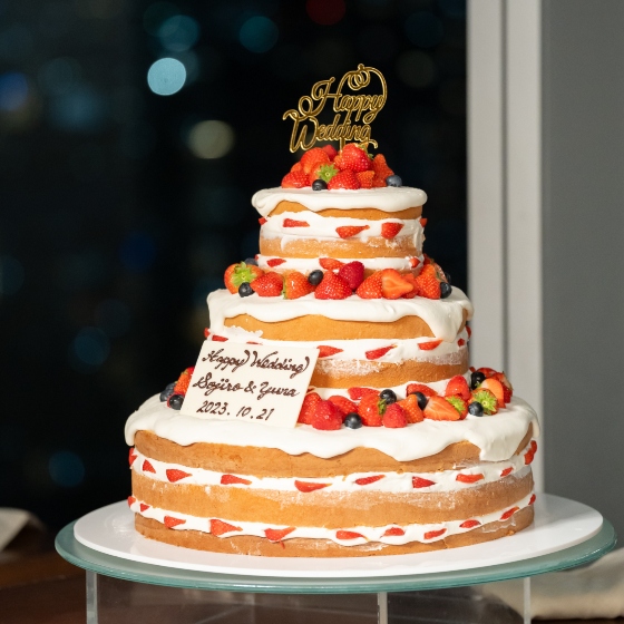 本当に料理が美味しいので、試食会でいただいたものを中心にゲストの方々が喜んでくれるように選びました。演出も式場のものと自分たちで作成したものを取り入れたので、