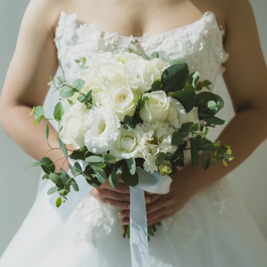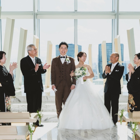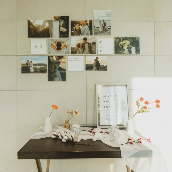 いつもサロンの雰囲気が良くて、毎回楽しく打ち合わせをさせてもらいました。プロデューサーさんがすごく優しくて、でもてきぱきと動いてくださり、優柔不断な私達にいつも寄り添ってくださいました。やりたいことがあれこれ出てきて変更をお願いしても、いつも快く対応してくださったので、細かいところまでこだわることができました。当日はいろんなスタッフの方々が私達の為に動いてくださり、何の不安もなく過ごさせていただきました。やっぱりプロやなぁといいながら2人で感動していました。今日はお二人は楽しむだけですよ(^^)と言ってくださった時は、本当ここにしてよかったと改めて思えました。