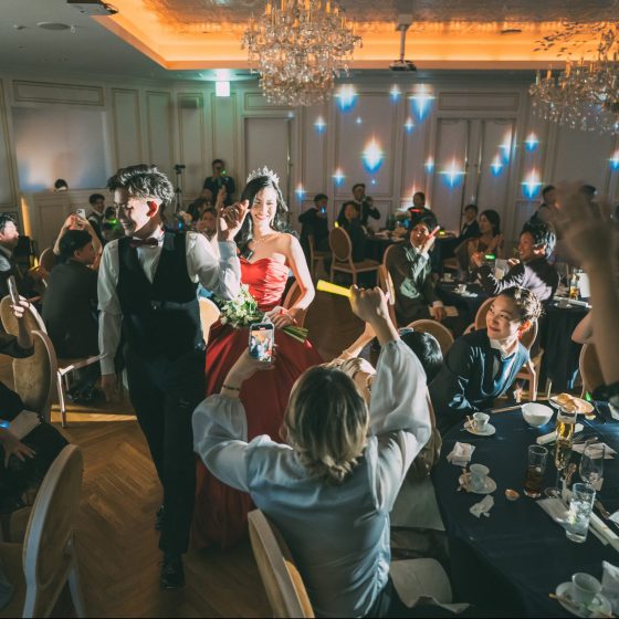 各テーブルから代表ゲストに参加してもらい、新郎新婦も一緒になって進めた進行です♪