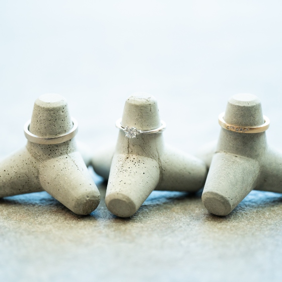結婚式は二人の思い出の品であるテトラポッドを祭壇に置いて誓うテト前式とし、ブーケとテトラポッドを友人達に運んでいただきました。