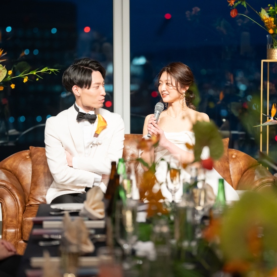 人前式では夕焼け、披露宴では夜景を楽しむことができました。