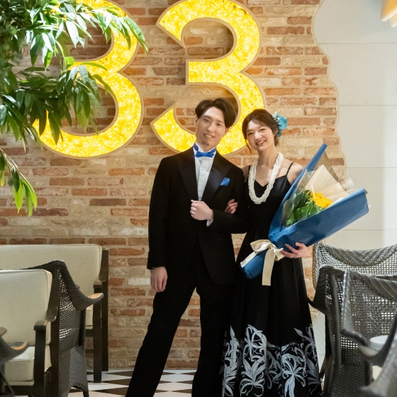2人の休日が少しズレているのでなかなか打ち合わせや準備の時間が取れなかったせいか余興などをどのようにするか決められず、なかなか思うように進まなかったのですが、プロデューサーの藤田さんに、チャペルを2度使うウルトラCをご提案いただき、「それや!」となりました。 結果としてチャペルに再度移動し、「フラダンス」と「ホルン演奏」を披露することが叶いました。