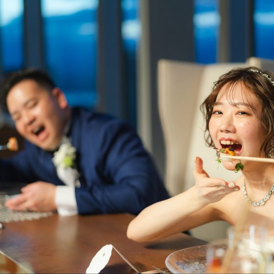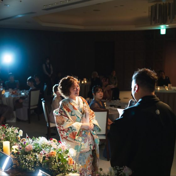 来てくださったゲストの方が「二人らしい結婚式・披露宴でとても素敵だった」と言ってくれ、元々は家族・親族のみでやる予定でしたが改めて、友人やお世話になった人を呼んで式をできたことがよかったなと感じています。両親もとても喜んでくれていました。