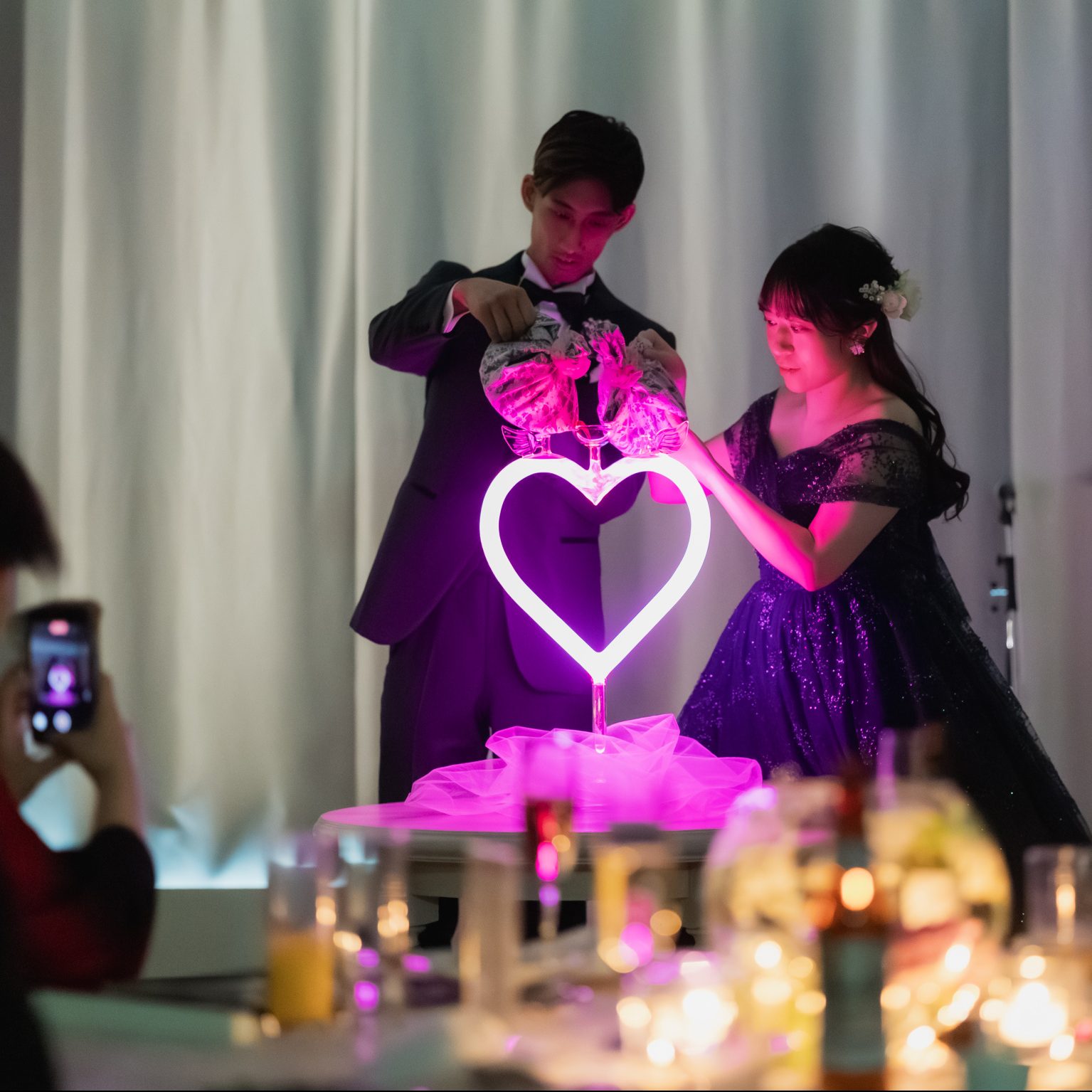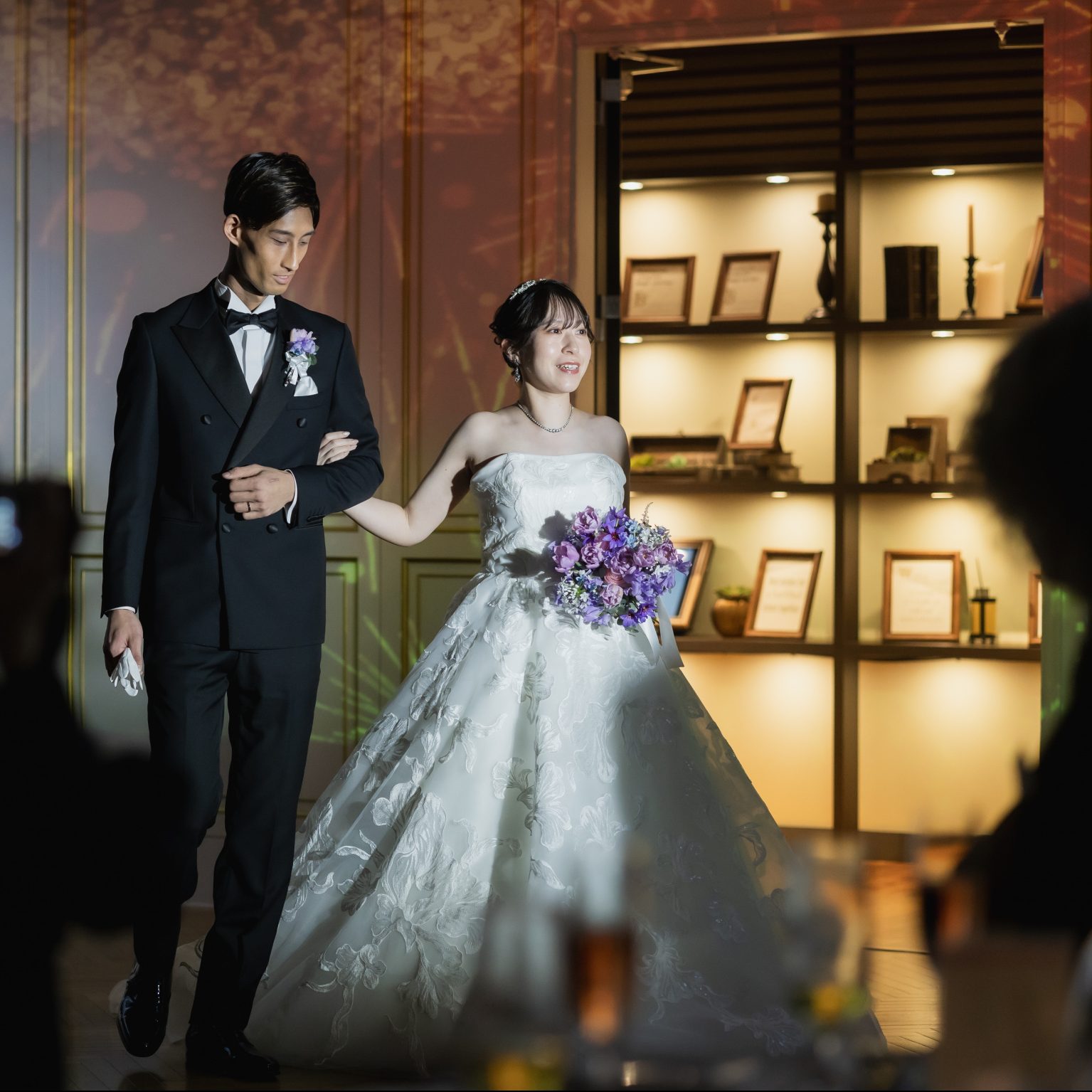 会場の花も好きな紫を中心に統一感を出し素敵な空間にした。