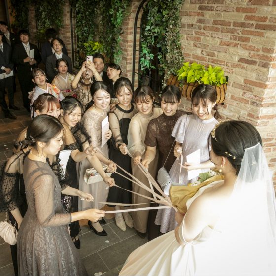 室内だったのでブーケトスではなく、ブーケプルズにしてこだわりました。作るのは大変でしたが、盛り上がって、楽しかったのでいい思い出です。