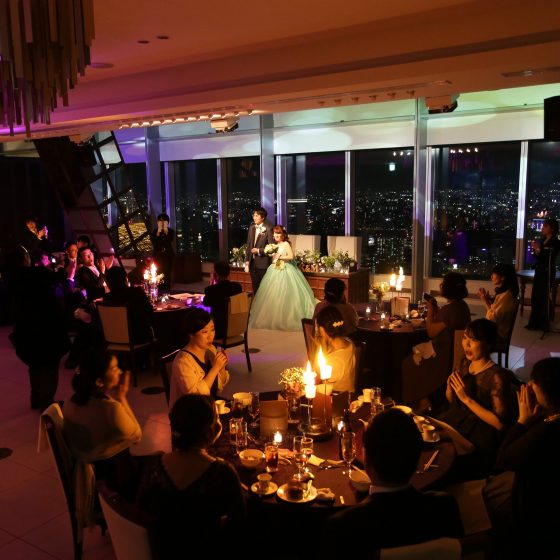 お色直し後の入場に加えてキャンドルイリュージョンの演出で