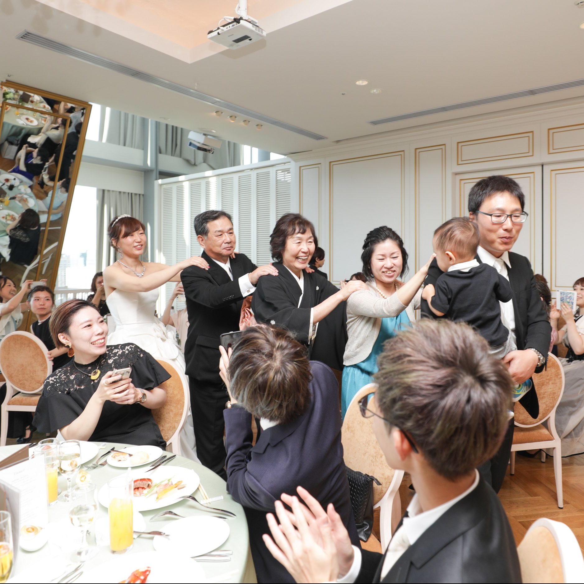 乾杯やケーキカット、両親への贈り物やお見送りの時など、盛り上がりのあるところでは自分たちの好きな曲を流して頂きました。それ以外の歓談中の時などは、お互いそれぞれ思い出として強く印象に残っている曲を流してもらい、ゲストの方との思い出を共有できるようにしました。