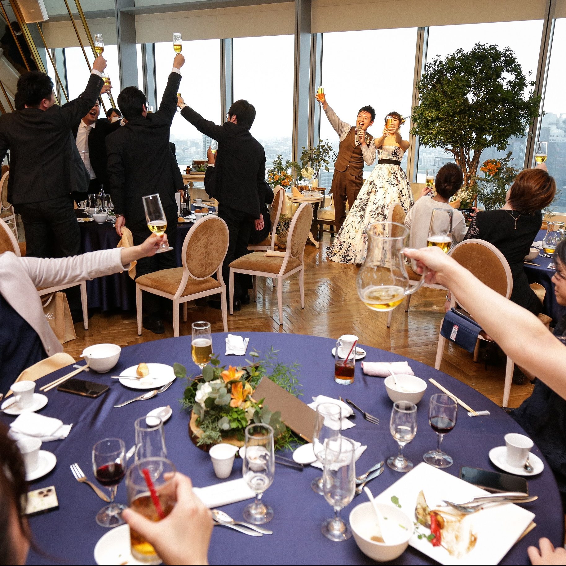 テーマを「cheers!wedding」にしました!アフターセレモニーからフリードリンクで乾杯。