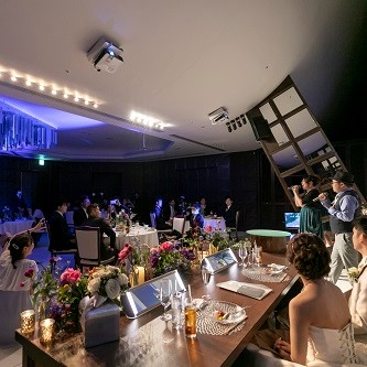 新婦入場前のムービー→暗転状態での入場→会場のカーテンオープンによる採光の中での登壇という一連の演出が33でしかできず、感動的でドラマチックな演出になるなと確信しました。