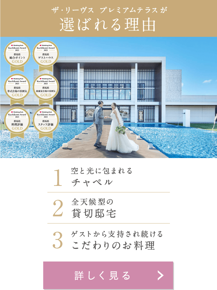 THE LEAVES Premium Terraceは、自然のぬくもりとスタイリッシュな空間が調和したナチュラルモダンなウエディングステージです。