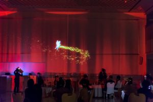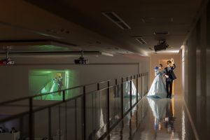 スポットライトが当たり、新郎新婦様がご一緒に入場です♪