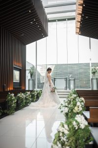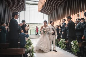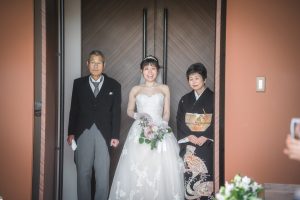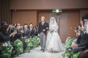 チャペルの扉が開くとそこに現れるのは花嫁と花嫁のお父様