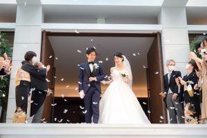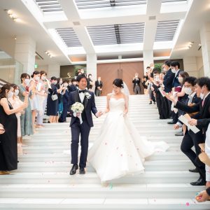 リーヴスのフラワーシャワーは会場内入ってすぐにございます純白の大階段にて行います!