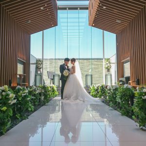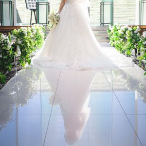 バージンロードに空が写り、素敵なショットをお撮りすることができます
