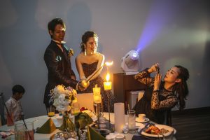 密や接触、飛沫に気をつけながら感染対策を活かした演出なのです。