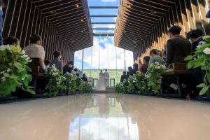 永遠の愛を空に向かって誓っていただいたおふたり。