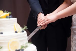 フレッシュレモンとブルーベリーの乗ったウエディングケーキは