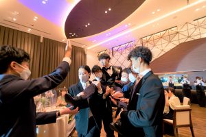 新郎様の職場の制服や仮装をお召しに再入場される方や