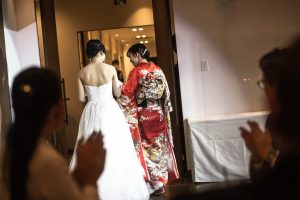ご披露宴の折返しのお時間となるときにお色直しの姿で登場し