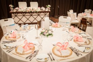 ”女性のゲストテーブルはピンク色で可愛らしく♪”