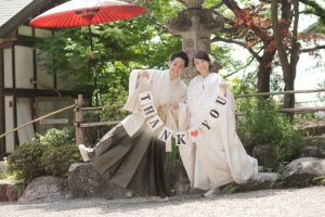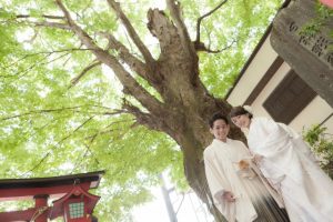 リーヴスでは、リーヴス館内に限らず、おふたり思い出の神社で神前式を行なっていただくことができます。