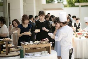 お二人はゲストの皆様にお皿を配ったり、お二人自身もブッフェに参加したり、過ごし方は様々♪