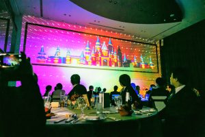 壁一面を使用したダイナミックプロジェクションマッピングの上映が